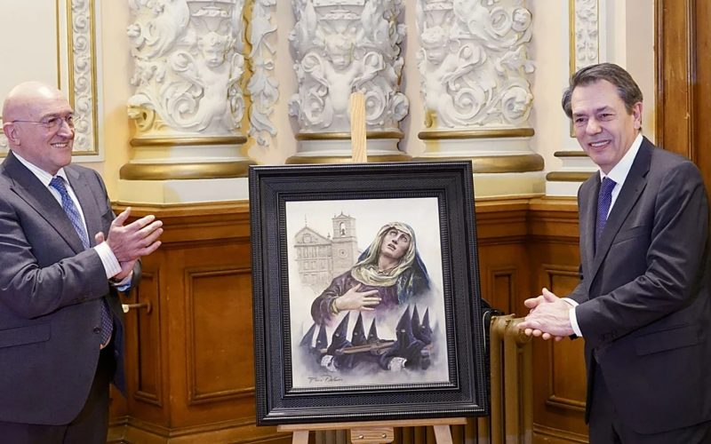 El Salón del Recepciones del Ayuntamiento de Valladolid ha acogido la presentación del cartel para la Semana Santa de 2026, una obra que le fue encargada al pintor catalán Augusto Ferrer-Dalmau, confeso seguidor de la Pasión vallisoletana desde que vivió un tiempo en la ciudad, y cuyo resultado se ha desvelado esta tarde. «Hoy es un día importante», ha señalado el alcalde de la ciudad, Jesús Julio Carnero, que ha celebrado la feliz coincidencia de esta presentación con la celebración del Día de la Paz.