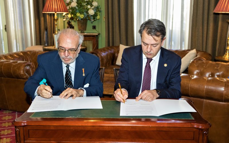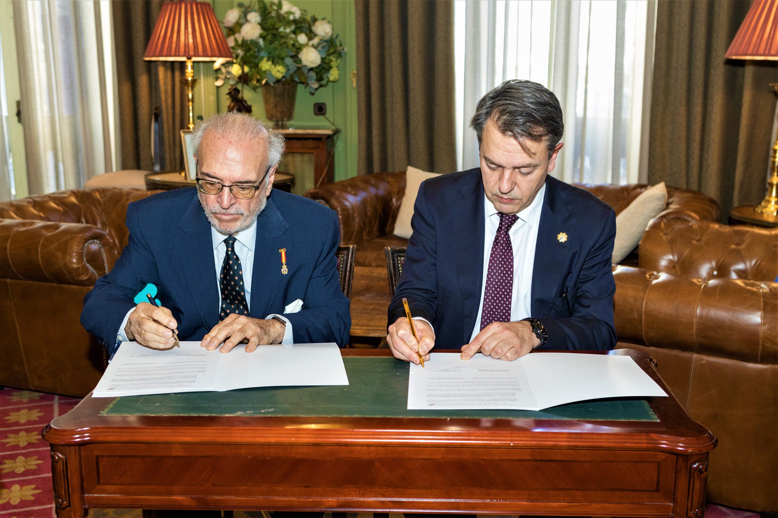 El Convenio de Colaboración fue suscrito en el Salón Primo Rivera de la Real Gran Peña por el Fundador de la Fundación Ferrer-Dalmau, D. Augusto Ferrer-Dalmau Nieto, y el Presidente de la Junta de Embajadores de la Academia de la Diplomacia y Embajador de España, D. Eduardo de Laiglesia y del Rosal, Marqués de Villafranca del Ebro.