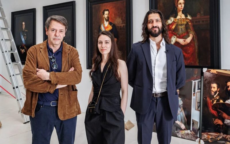 El aroma a pintura todavía fresca copa una sala regada de cajas de herramientas y vitrinas en proceso de desembalaje. La banda sonora son los inconfundibles martillazos y las preguntas de los operarios: «¿Este cuadro va aquí?». Alguien responde… en efecto, era allí. Se palpa el arte y la historia en la Fundación Carlos de Amberes de Madrid; la misma que, durante cuatro jornadas –entre el 28 y el 31 de mayo– acogerá ocho lienzos de la Colección de los Reyes de España que elabora desde el pasado 2024 el ‘Taller de Artistas históricos Ferrer-Dalmau’.