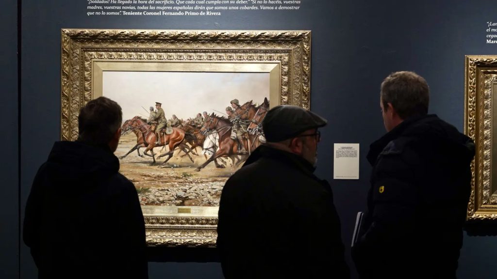 Junto a él obras reconocibles del autor como ‘La Última Laureada (1921)’, que muestra a un jinete del regimiento de Alcántara durante el ‘desastre de Annual’; ‘El Sidi’, que sirvió para ilustrar la primera edición de la novela ‘Sidi’ de Arturo Pérez-Reverte, amigo del pintor; o ‘El Saludo’, que muestra a un niño, acompañado por su padre, que saluda a una pareja de la Guardia Civil junto a una tierra de labor en Navarra; y ‘Alférez de los Tercios Españoles’.
